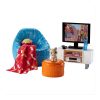 Barbie set za filmski večer je odličen za sprostitev vaših barbie lutk po napornem dnevu. Ob prijetnem počivalniku in televiziji, vam družbo dela še prikupna mucka, pogostite pa se lahko tudi z kokicami.