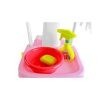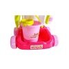V kompletu so voziček, vedro s stiskalnico za brisanje krpe in krtača na palici, krtača, zajemalka, skleda, vreča za smeti ter imitacija mila in čistilnega sredstva. Celoto je enostavno sestaviti, vsak element je mini različica pravega pribora.